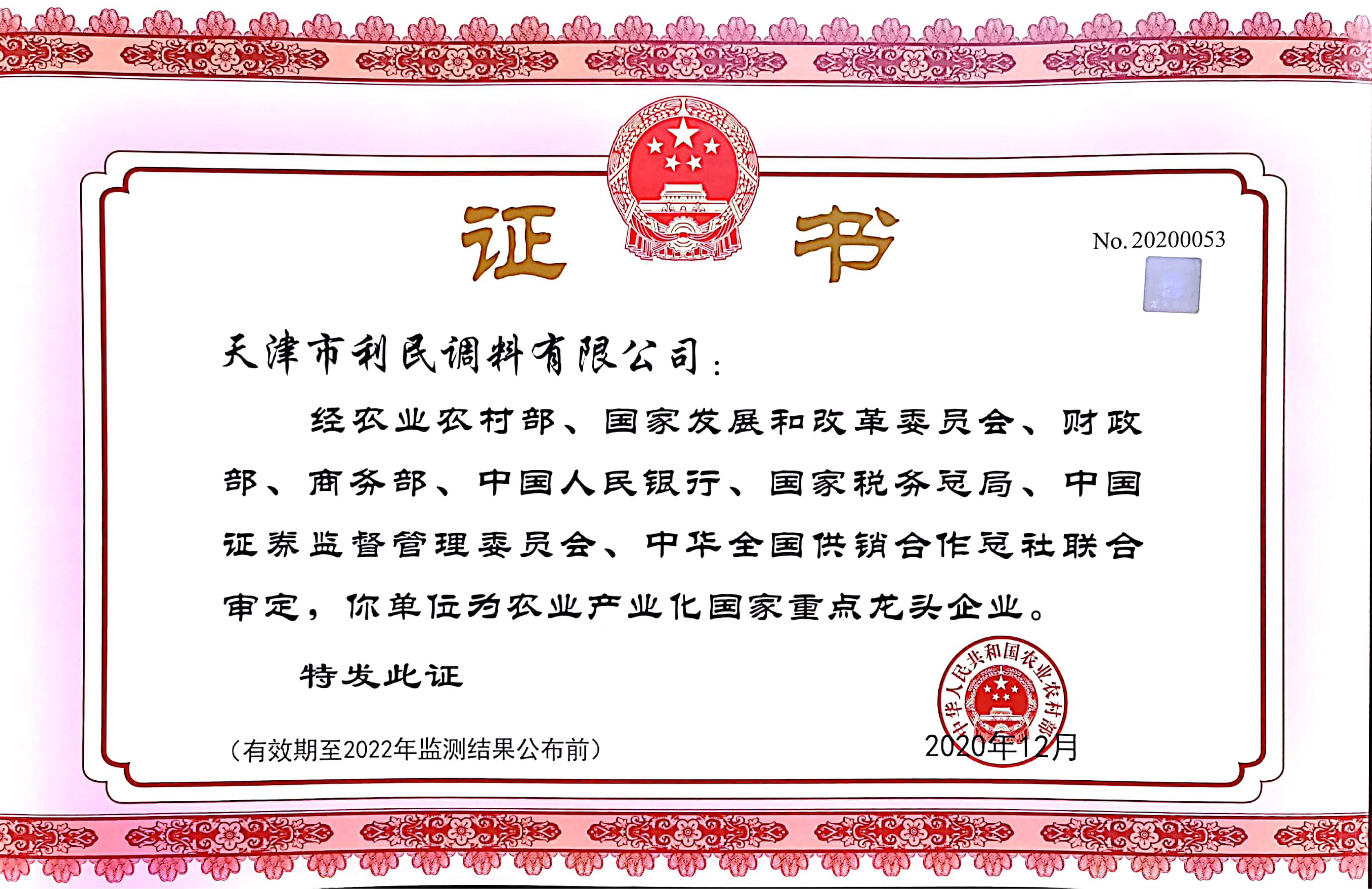 近日,经太阳集团网址推荐、专家评审、有关部门审定,利民调料公司成为农业产业化国家重点龙头企业,商贸公司和立达海水公司成为天津市第十二批农业产业化经营市级重点龙头企业。 目...